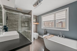 Dans l'unité principale sur 2 étages on y retrouve un foyer au gaz dans le salon. Salle de bain entièrement rénové avec douche indépendante et bain autoportant. Toilette intelligente et bain autoportant.