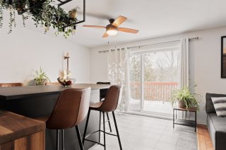 Condo coup de coeur 829 pc situé au DERNIER ÉTAGE. Pour les amoureux de LA NATURE, AUCUN VOISIN ARRIÈRE. Boisé avec VUE SUR LA RIVIÈRE avec énorme balcon. Beau condo: 2 chambres, cuisine rénové 2022. Très propre et éclairé. 2 stationnements. Secteur tranquille, à retrait de la rue.
