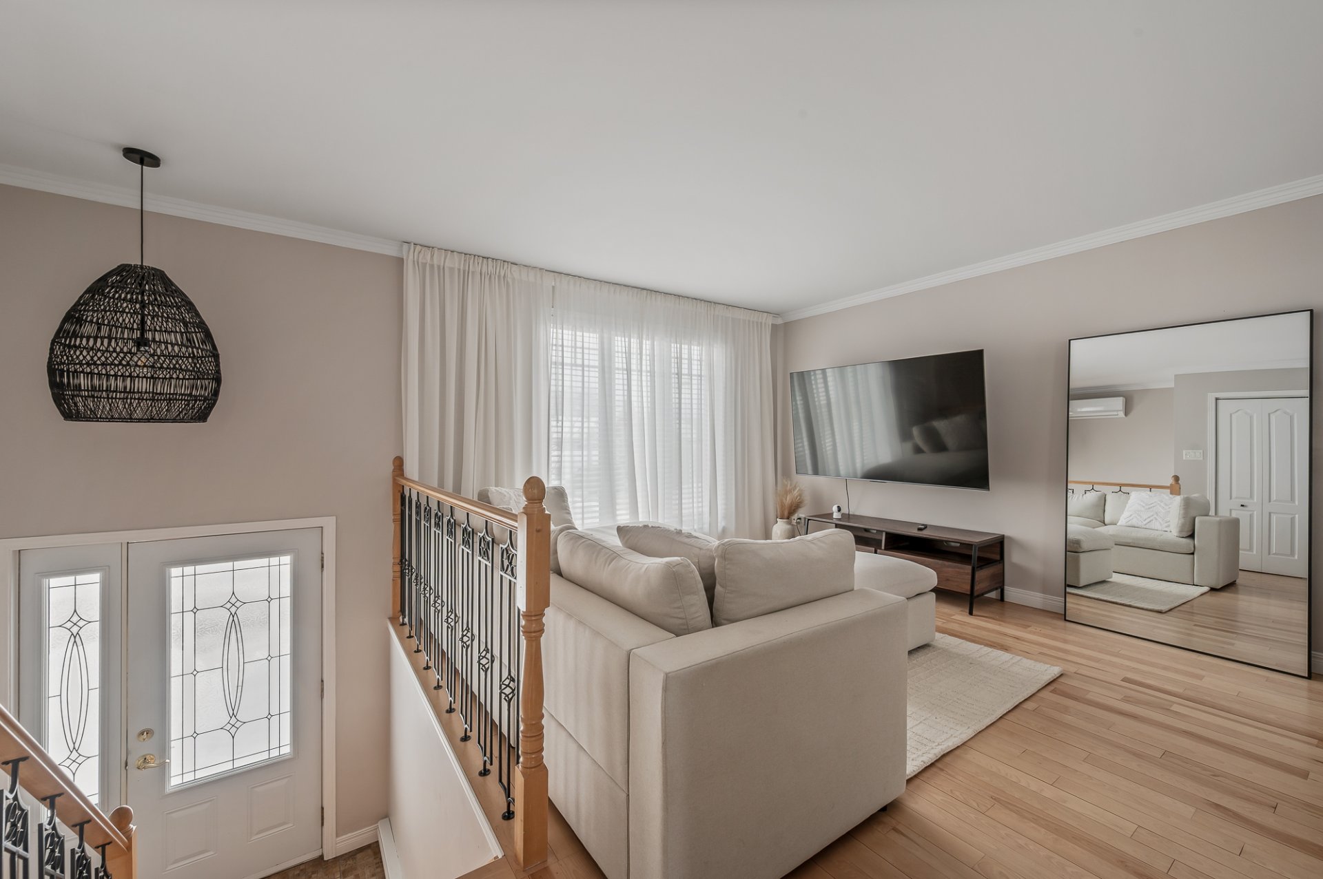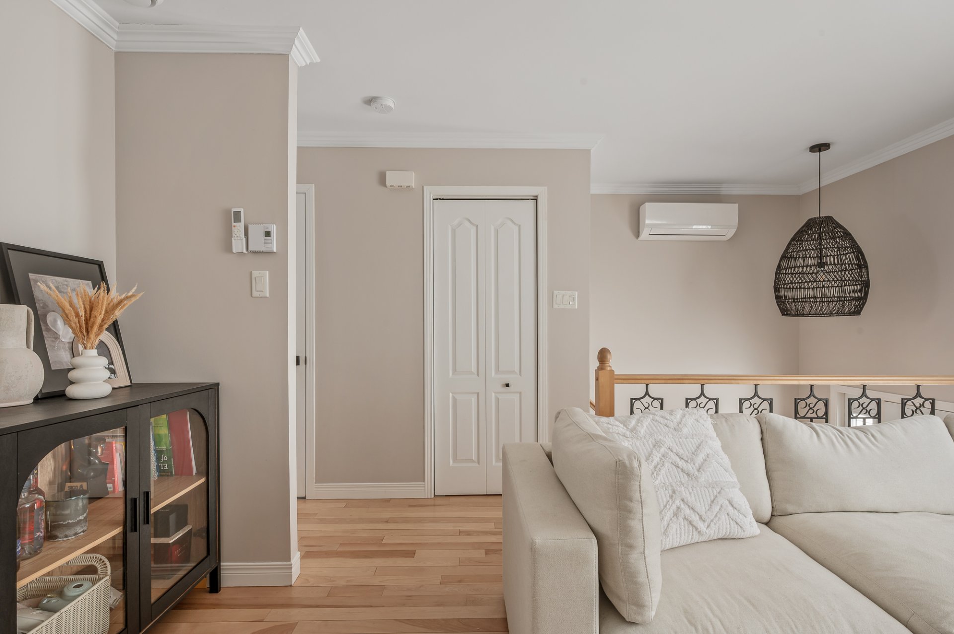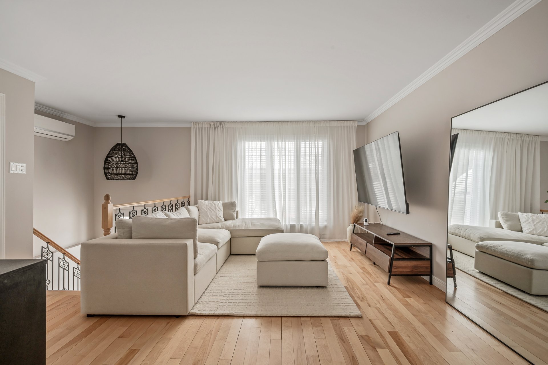 Inclus : Luminaires, thermopompe murale, échangeur d'air, pôles à rideaux