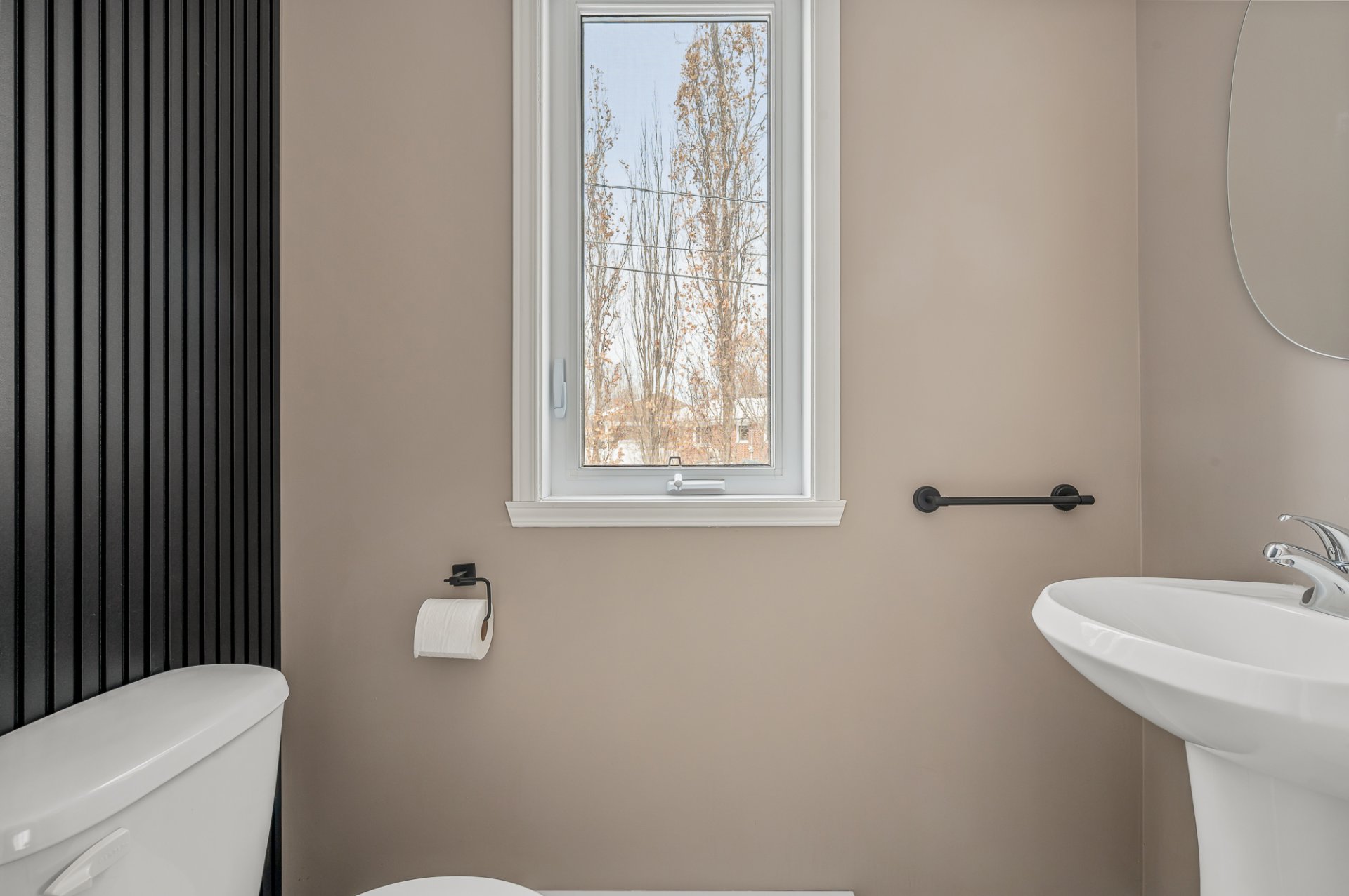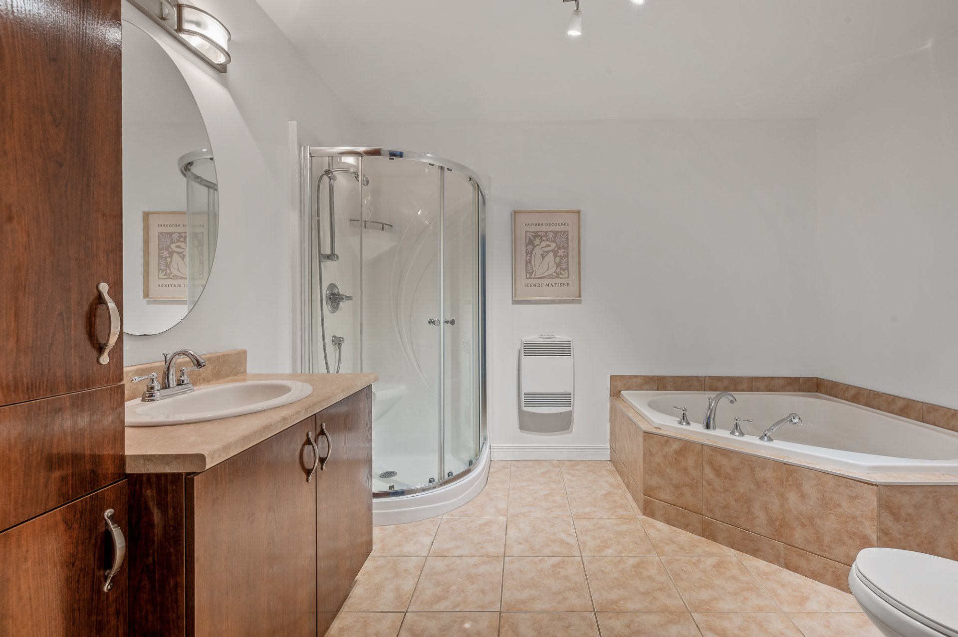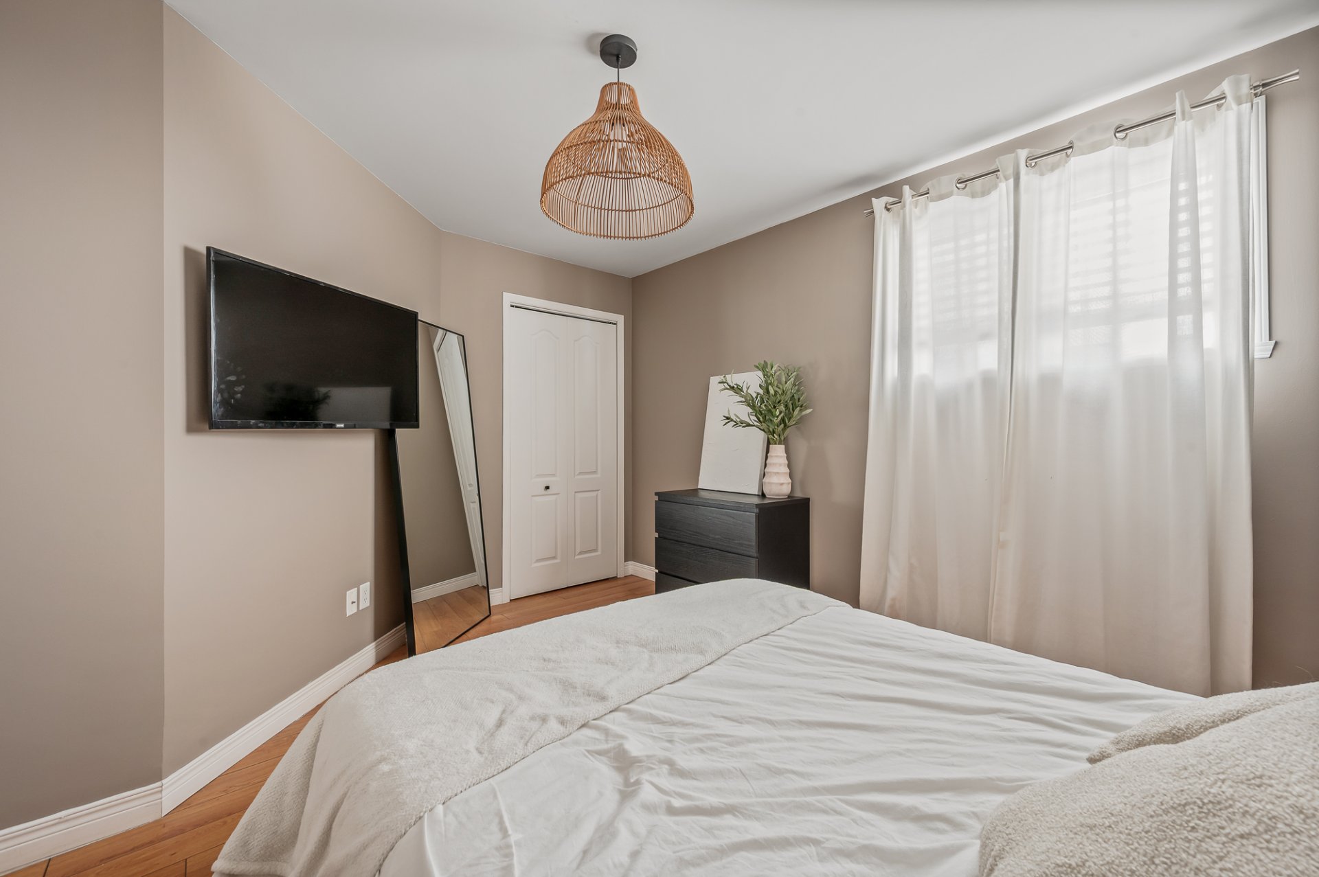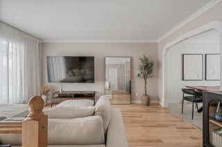 Inclus : Luminaires, thermopompe murale, échangeur d'air, pôles à rideaux