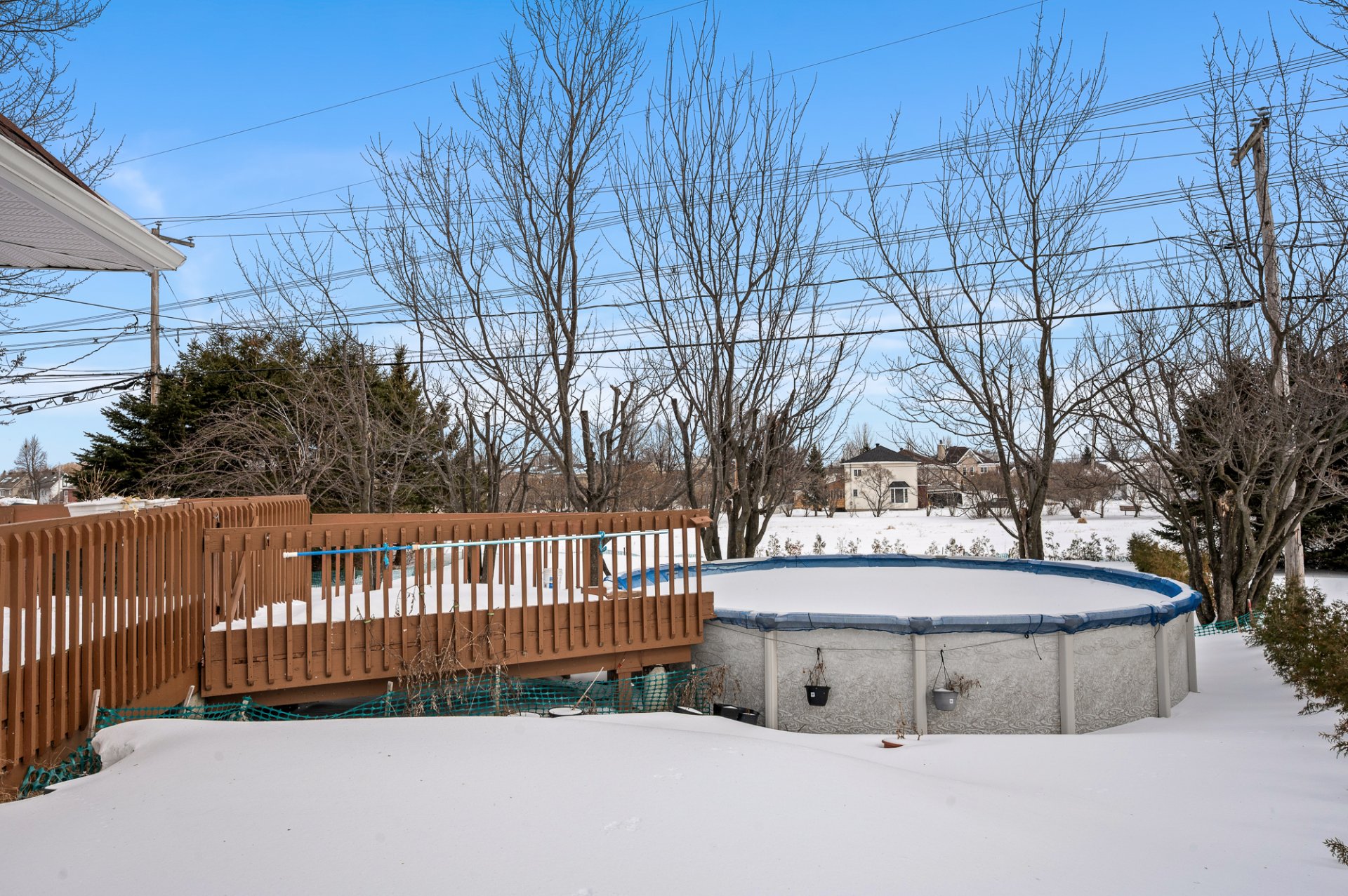 Le terrain arrière vacant appartient à Hydro-Quebec. Rien de permanent doit être installé.