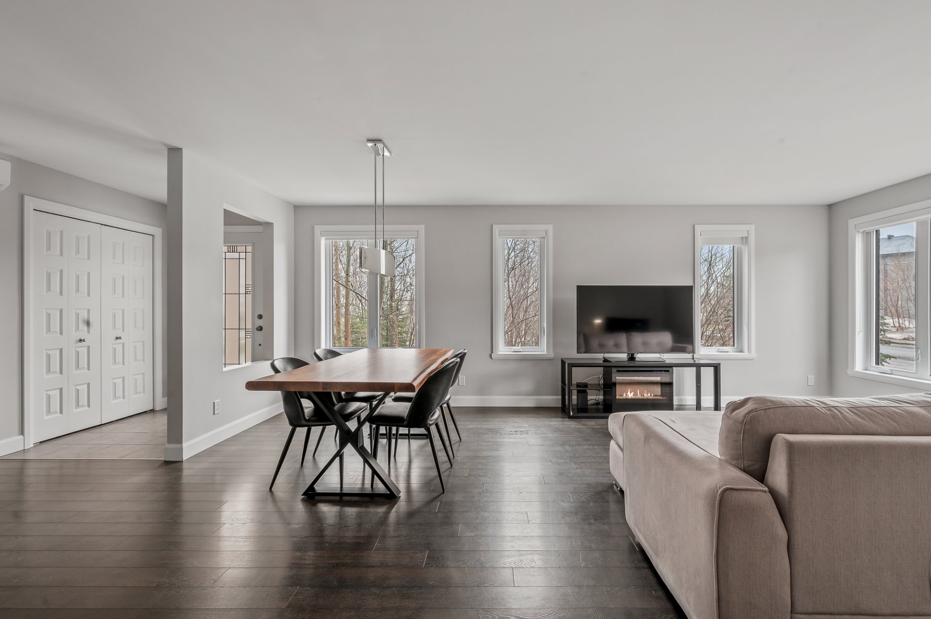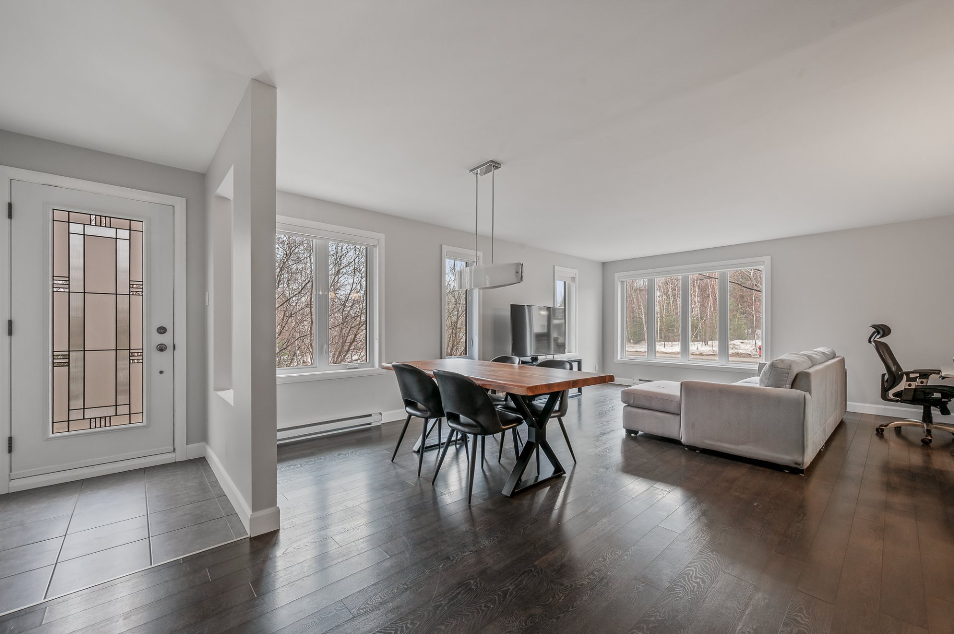 Inclus : Luminaires, habillage de fenêtres, climatiseur mural, échangeur d'air