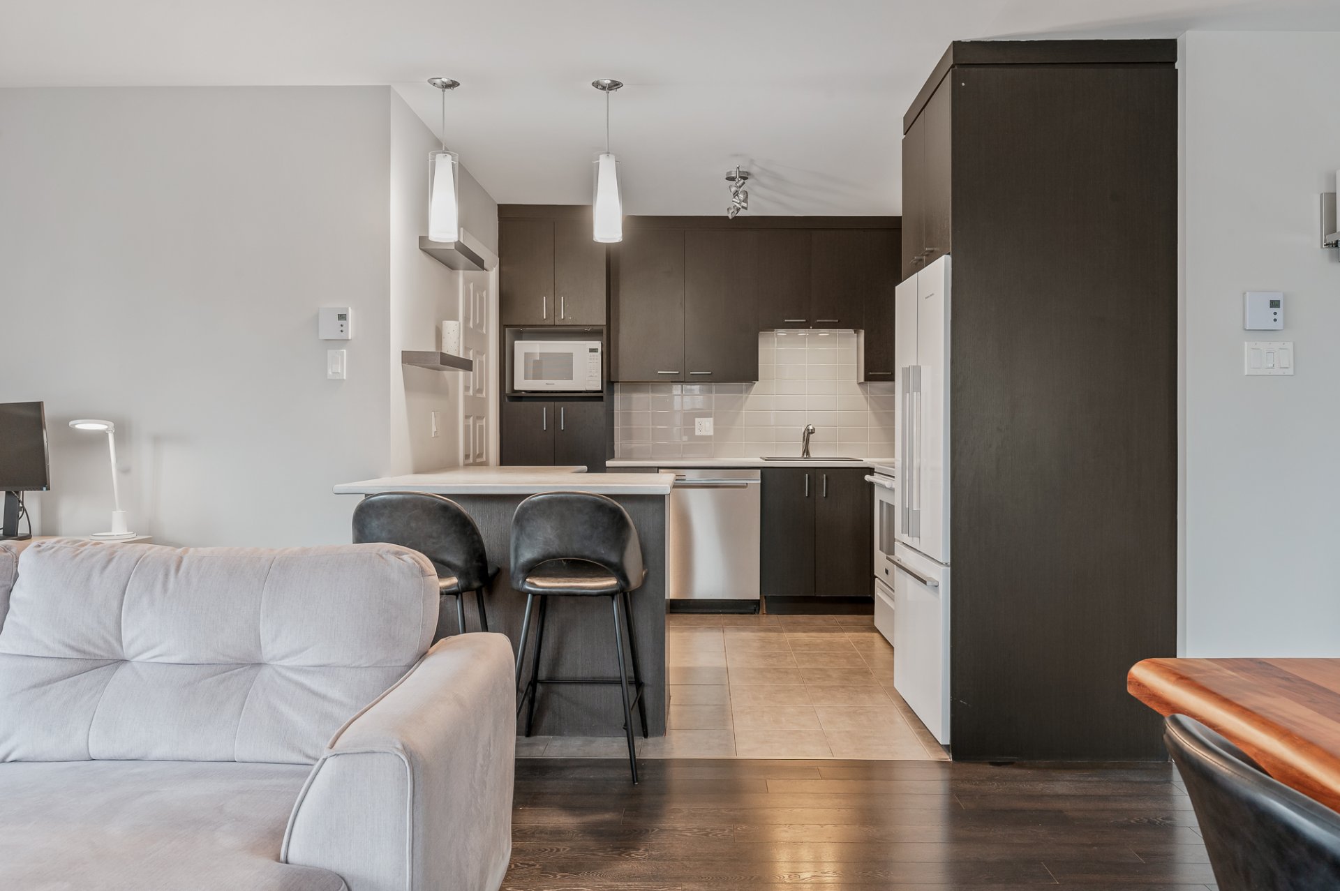 Charmant condo situé à proximité de tous les services essentiels mais surtout orienté du côté sans voisin. Profitez d'un espace de vie lumineux à aire ouverte, parfait pour recevoir et pour le quotidien. La cuisine, la salle à manger et le salon s'harmonisent dans un environnement convivial et fonctionnel. Le balcon intime vous offre un coin extérieur agréable pour relaxer en toute tranquillité. Vous serez également comblé par la grande quantité de rangement disponible, facilitant l'organisation de votre espace. Ce condo inclut deux espaces de stationnement, un atout rare et pratique.